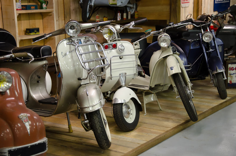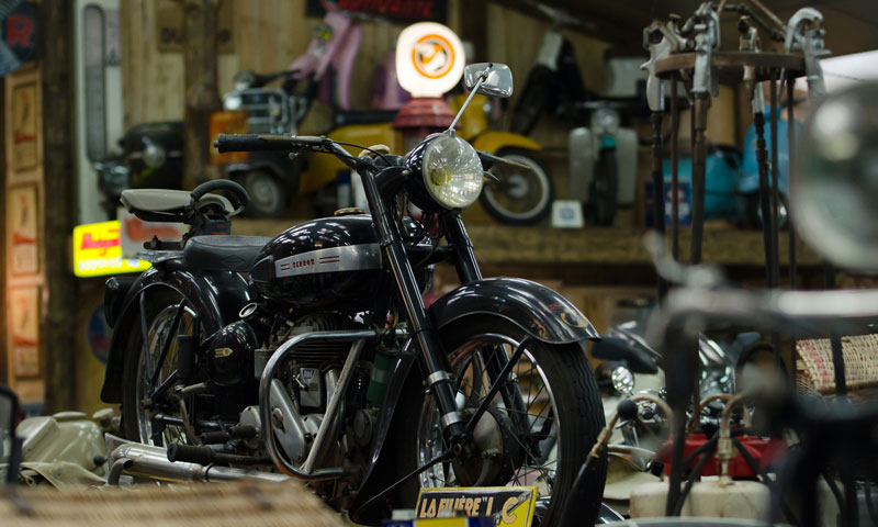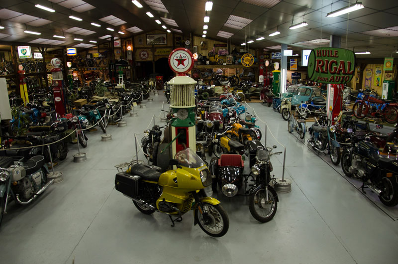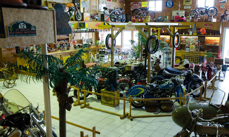 Cet espace de 2000 m2 dédié à la moto ancienne, restaurée ou dans son jus d'origine, vous présente une collection privée de plus de 400 deux-roues unique en France (motos, side-cars, cyclomoteurs, scooters, vélos).