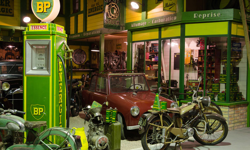 Dans un décor d'exception, ce musée vous plongera dans une ambiance d'époque avec ses affiches, ses plaques émaillées, ses pompes à essence. Davantage qu'une exposition de motos anciennes, le musée vous invite à vous émerveiller devant de multiples petites collections au cœur de la grande.